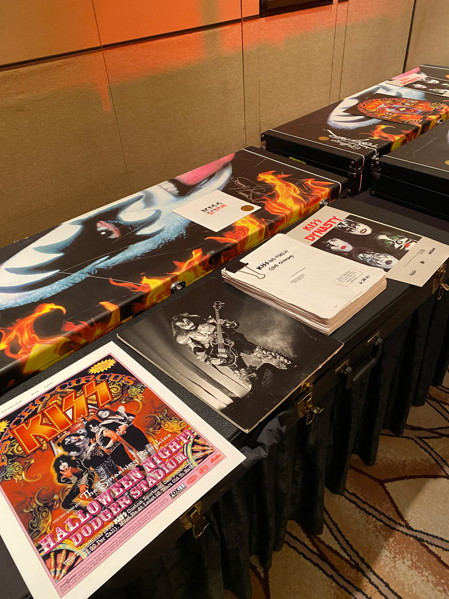 Rehearsal was almost 3 hours long, and went very quickly in my mind. I got to take photos of some of the items he offered in the âpop up storeâ as well as some photos of the bass cases filled with his personal items that each attendee received. Gene was very proud of that form of âgift basketâ and the first one he opened to show me even had a Revenge T-Shirt included!