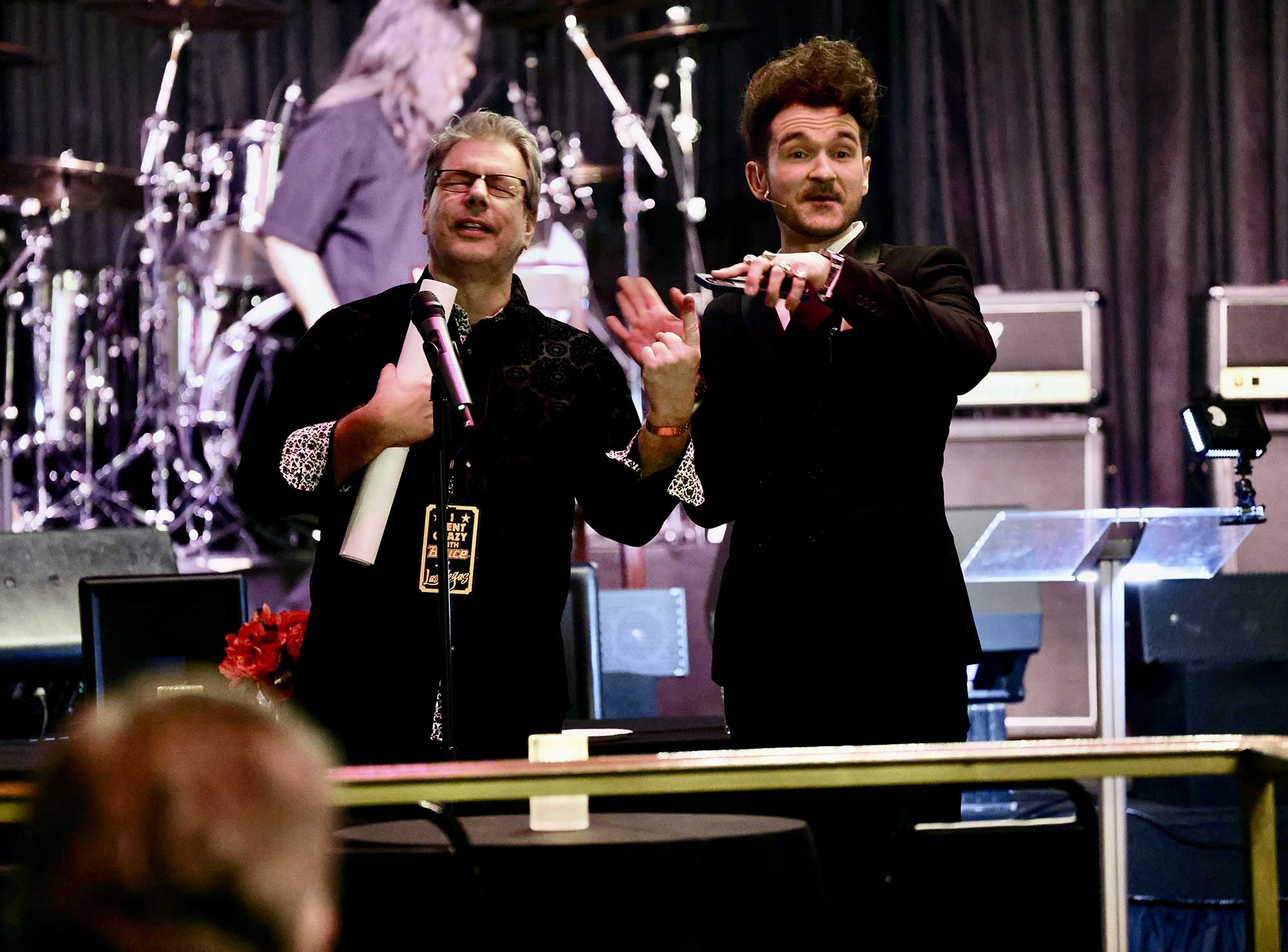Brent at roast imitating me with a tambourine from Grand Funk!