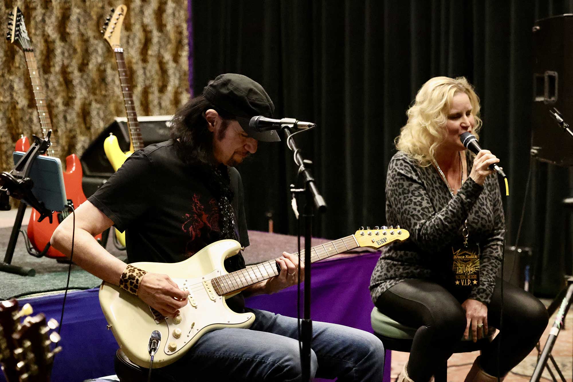 I also had the pleasure to perform with my wife Lisa, while we entertained with a career retrospective for the crowd at my favorite rehearsal studio in Las Vegas. We displayed Lisa’s Bling artwork, as well as a Museum of some of my rare KISS-associated career items. I even displayed two of my most iconic guitars.
