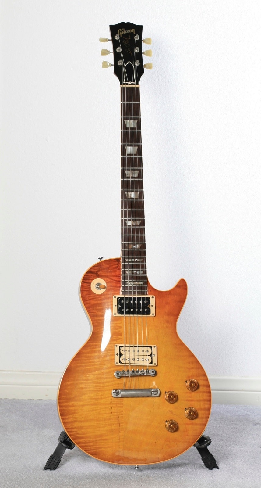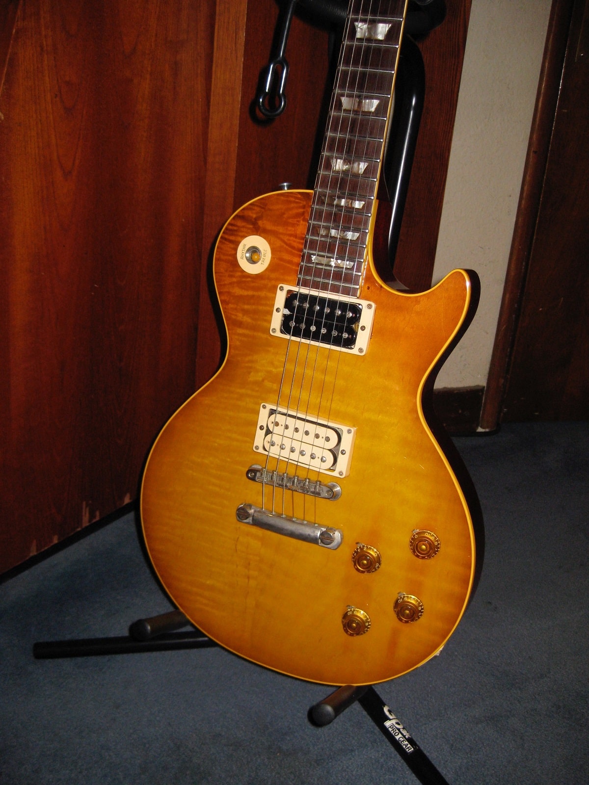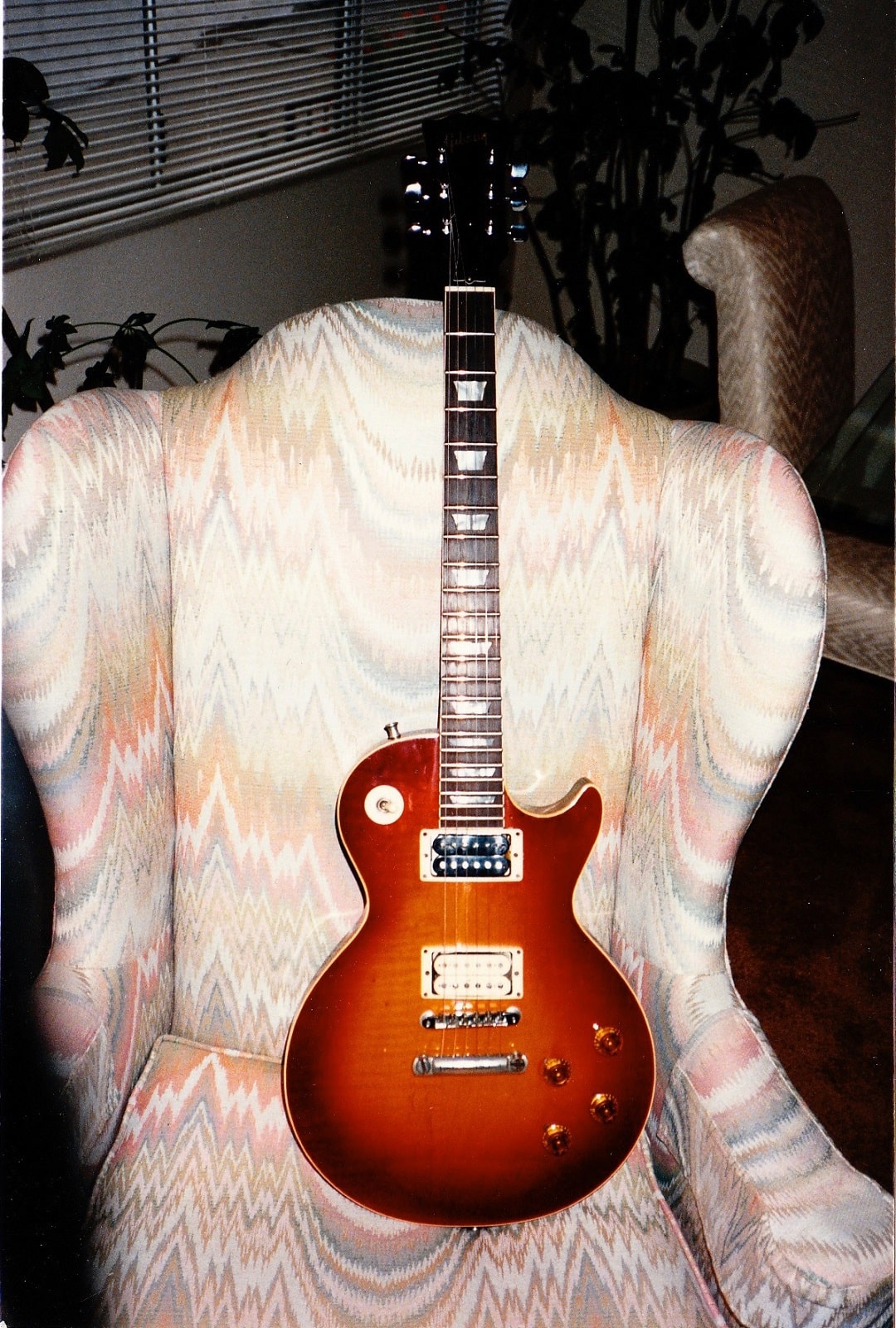 Here’s an amazing LP that has a fantastic tone, unique beauty, and has a big part in Kisstory. It was born as a 1953 Goldtop LP, that over the years had it’s conversion to be closer to a “59 Burst”. I bought in the late 80’s from my brother. The darker finish in one of the photos I shared from 1988, did not reveal the amazing Maple top. It originally had the conversion meaning the neck angle and routing for Humbuckers, one bridge PAF, and a non PAF neck pickup, and some parts were not from the 50’s. It also suffered a hairline neck joint crack, that was repaired. I had it re-fretted as well. I added the neck PAF pickup, and more period correct parts.