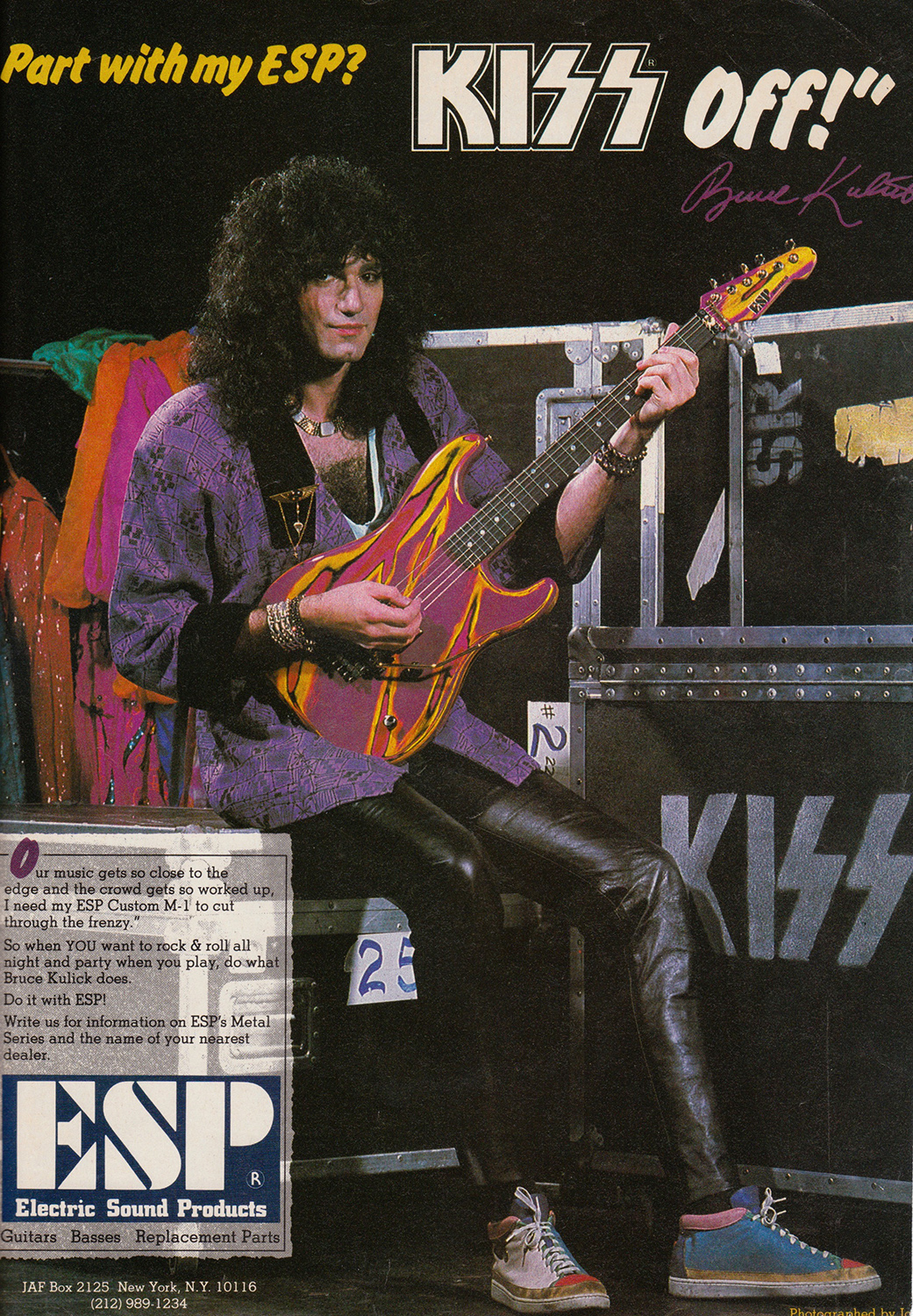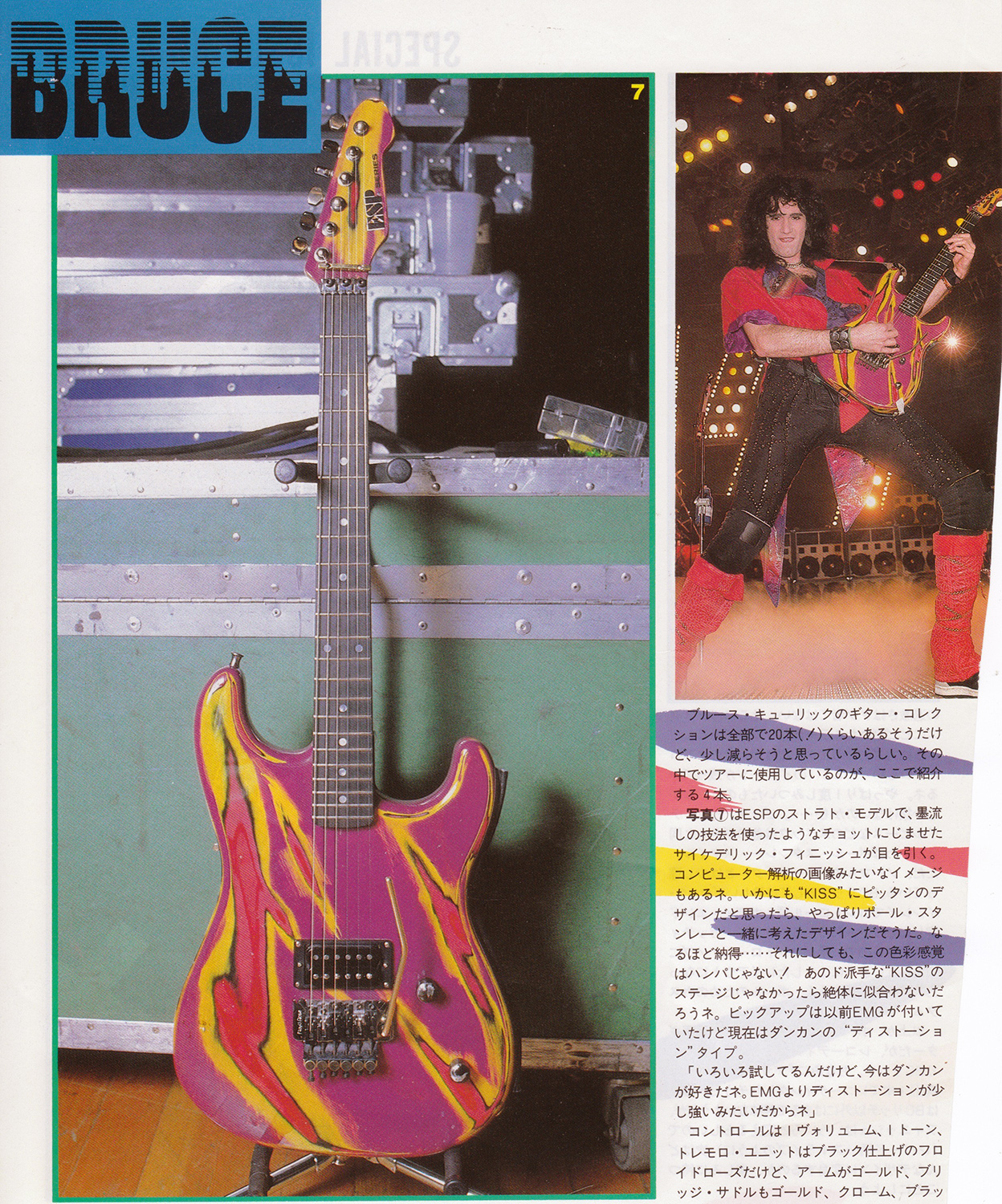 I started my relationship with ESP Guitars in 1985. I was impressed with their M-1 models, and the second one I got from them became known as the Multi-Swirl! It was very unique, and became iconic with the KISS Asylum tour and the KISS video for “Who Wants to be Lonely.” The details of the paint finish and the metal parts are truly unique. I have to give Paul Stanley credit for the concept of multi-swirl design, and with his guidance, ESP created this finish and even went on to use it on other models (in different color schemes) and even other artists embraced this look.
